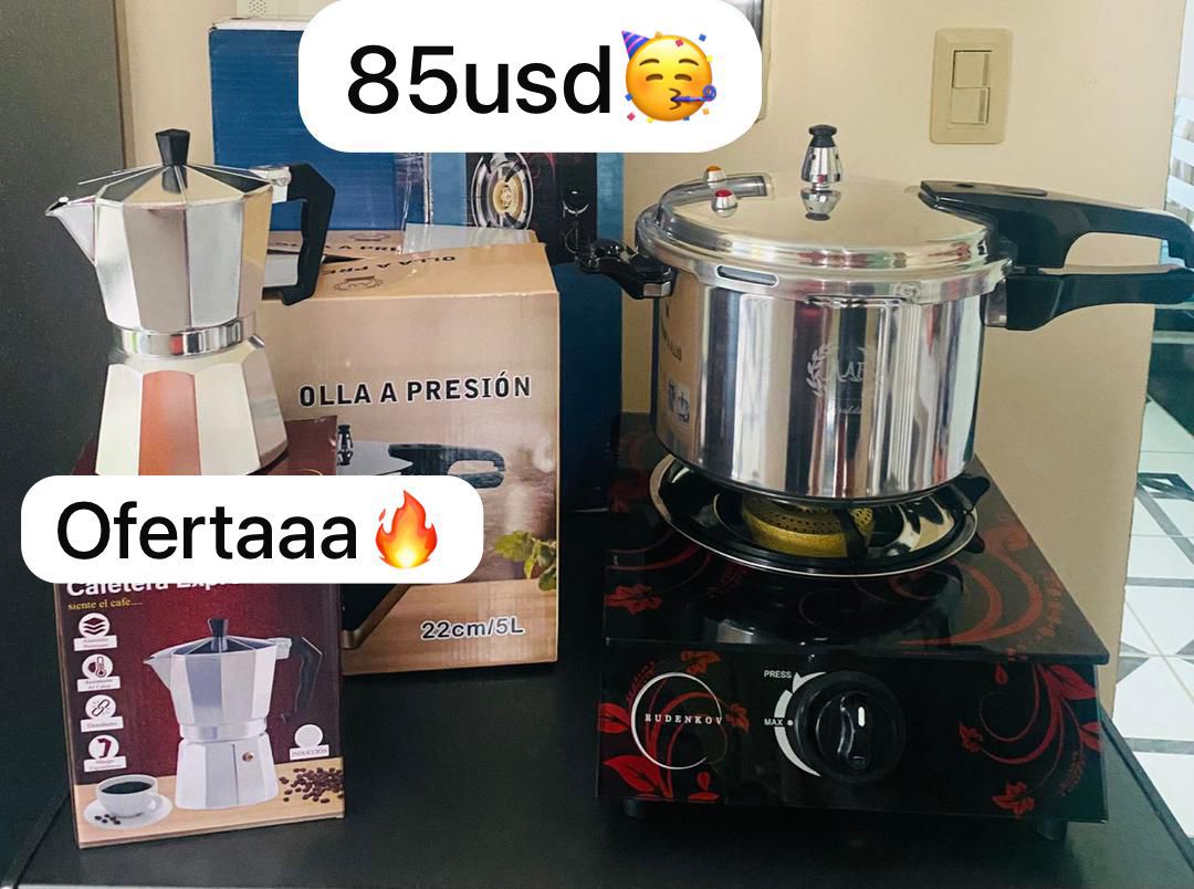 Set de Olla de Presión, Cafetera y Fogón de Gas